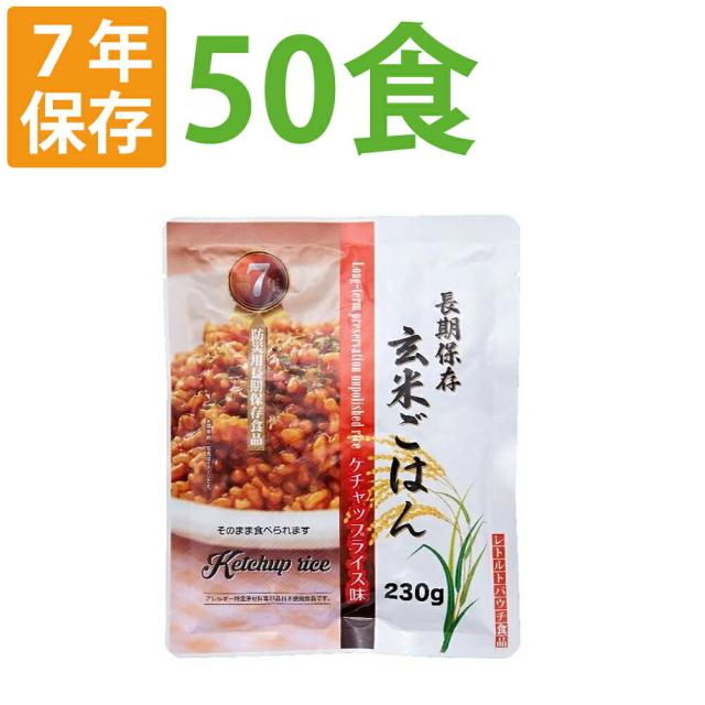 7年保存 非常食 レトルト「玄米ごはん ケチャップライス 50食セット/箱」加水/調理不要 常温長期保存可能 アレルギー対応食 賞味期限7年 (非常用 災害用 防災 食品 お米 ご飯 非常食セット 保存食セット 防災セット
