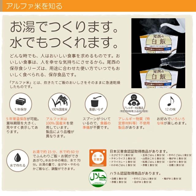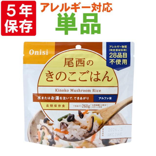 【メール便4個までOK】尾西食品 アルファ米「きのこごはん」5年保存 非常食 アレルギー物質(特定原材料等)28品目不使用 きのこご飯 アルファー米 尾西 アルファ化米 お米 ごはん ライス 非常用 災害用 保存食セット