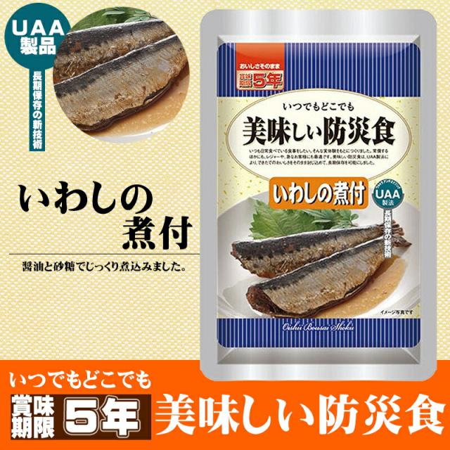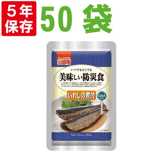 美味しい防災食 いわしの煮付 50袋/箱 5年保存食 非常食 UAA食品 そのまま食べられる長期常温保存食(備蓄品 おかず 非常食セット 防災用品 企業 団体 地震 災害対策 帰宅困難者対策)