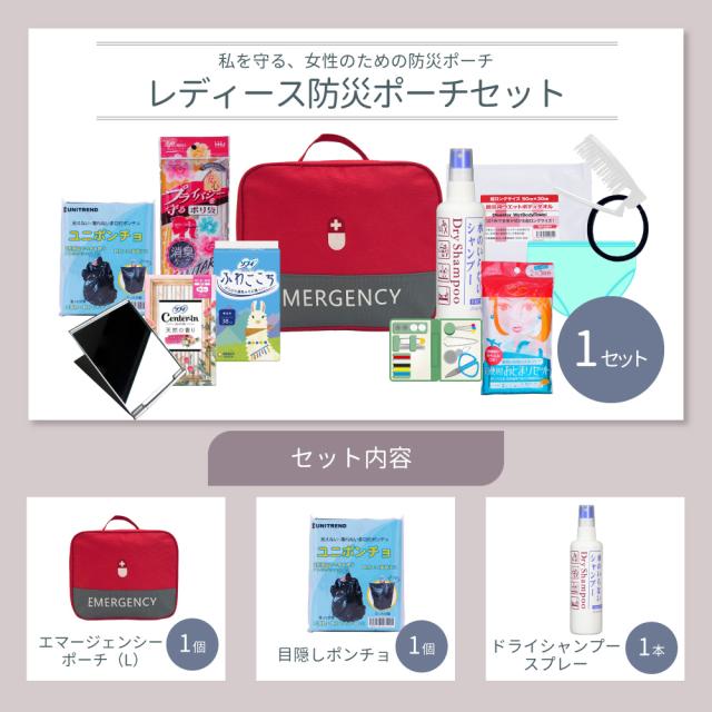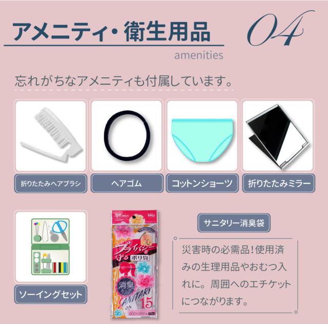 非常用持ち出し袋 レディース 防災ポーチ かわいい おしゃれ 防災バックパック 携帯トイレ 非常用トイレ ランタン ライト スリッパ エイドチーム 防犯 ホイッスル 避難 避難所 災害 地震