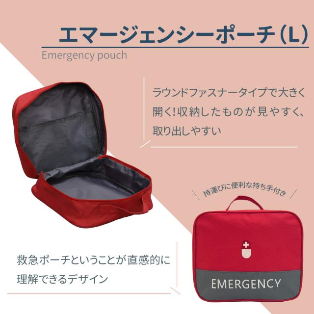 ※エマージェンシーポーチLのカラーは選べません。レッド、ピンク、グレーのいずれか一つが入ります。