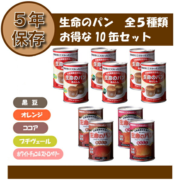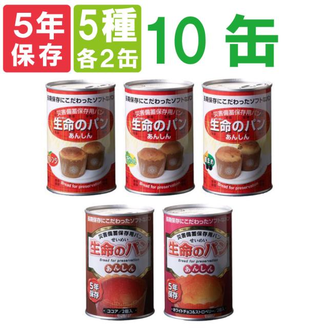【賞味期限5年保証】「生命のパン」 色々な味が楽しめる!全5種類 10缶コンプリートセット 災害備蓄用缶詰パン (非常食 保存食 備蓄用 保存食セット 非常食セット)自宅療養