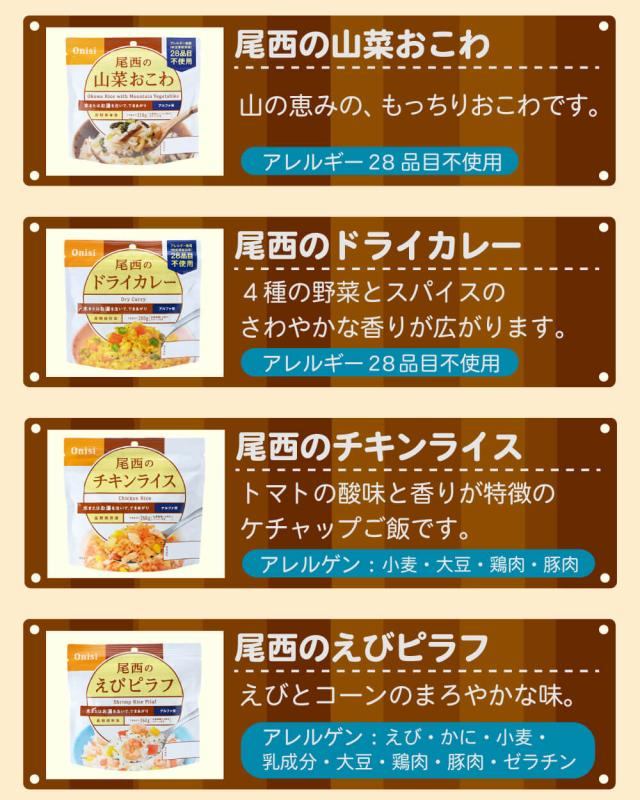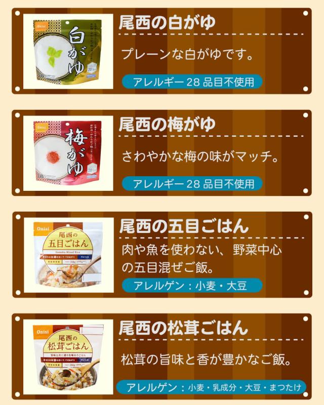 尾西のアルファ米全種 オリジナル防災マニュアル付