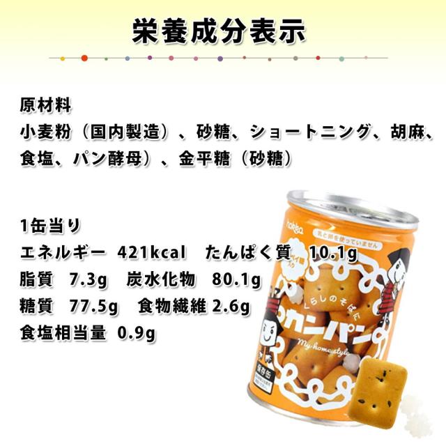 ■ 栄養成分表記:(カンパン1缶当り)エネルギー 421kcal