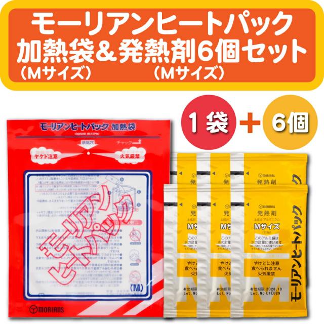 【メール便OK(1セットまで)】モーリアンヒートパック Mサイズ・加熱袋1個 + 発熱剤6個セット(非常食 保存食 防災グッズ 防災用品)SU