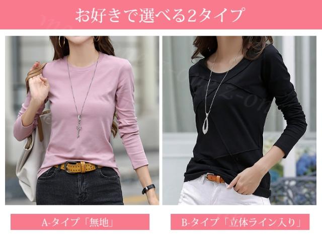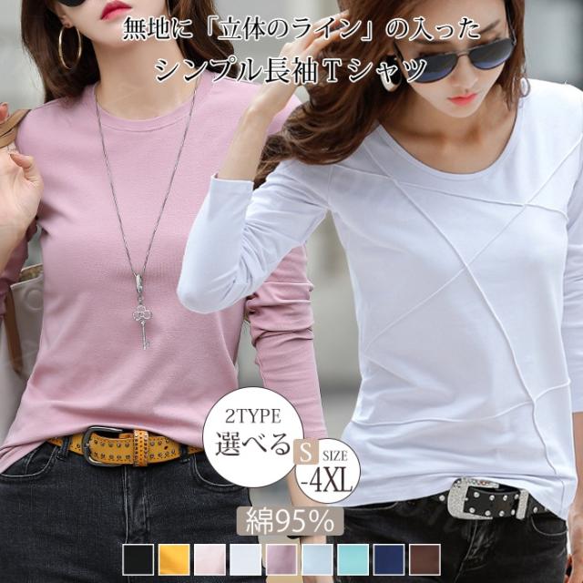 <1点1,450円!2点購入&クーポンで>長袖Tシャツ Tシャツ tシャツ 冬新作 新作 選べる2タイプ レディース 立体ライン 長袖 Tシャツ ティーシャツ インナー 綿 コットン クルーネック ラインデザイン 無地 カジュアル トップス カットソー ホワイトデー 卒業式