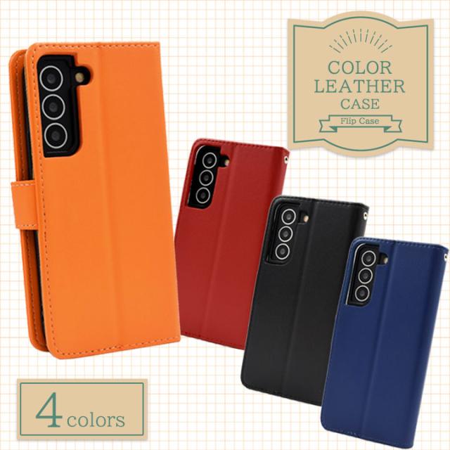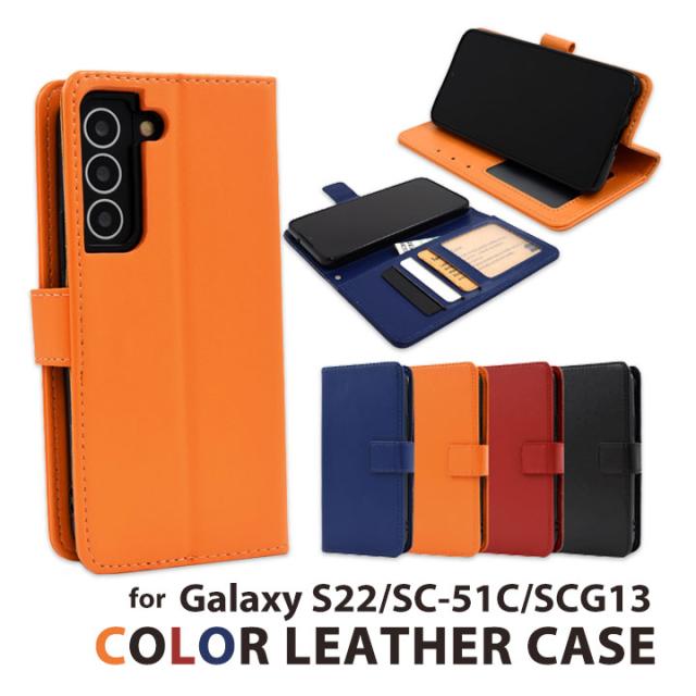 GalaxyS22 SC-51C SCG13 カラーレザー手帳型ケース レッド ブラック ブルー オレンジ カバー スマホ スマートフォン おしゃれ シンプル ストラップ ストラップホール カードポケット サイドポケット ギャラクシーエス22 メール便送料無料