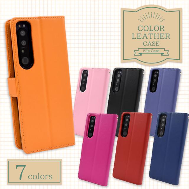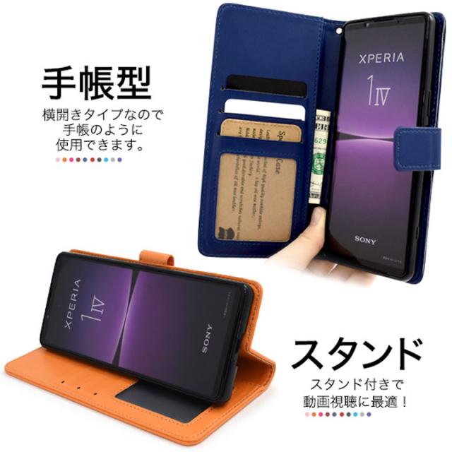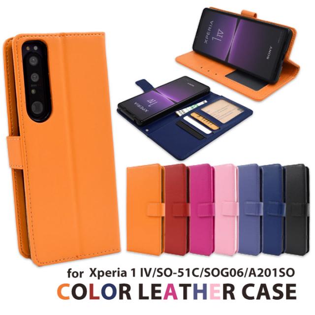 Xperia1IV SO-51C SOG06 A201SO カラーレザー手帳型ケース スマホ スマートフォン カバー ピンク ブラック オレンジ レッド ブルー エクスペリアワンマークフォー おしゃれ シンプル メール便送料無料