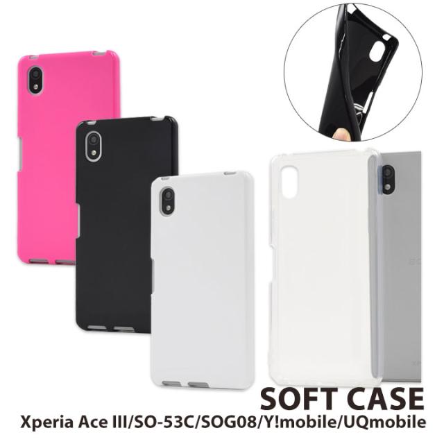 XperiaAceIII SO-53C SOG08 Y!mobile UQmobile ソフトケース スマホ スマートフォン カバー ピンク ブラック ホワイト クリア エクスペリアエースマークスリー シンプル ハンドメイド パーツ メール便送料無料