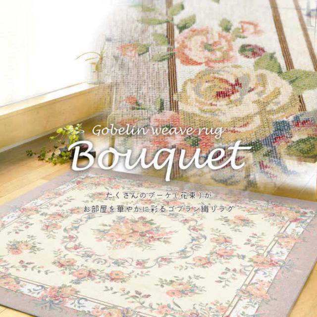■商品名:ラグ 230×330cm ゴブラン織 シェニールラグ 撥水 手洗いOK ウレタン入り 裏面不織布 ホットカーペット・床暖房対応 オールシーズン 花柄 上品 エレガント ブーケ