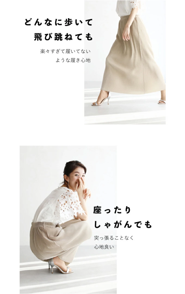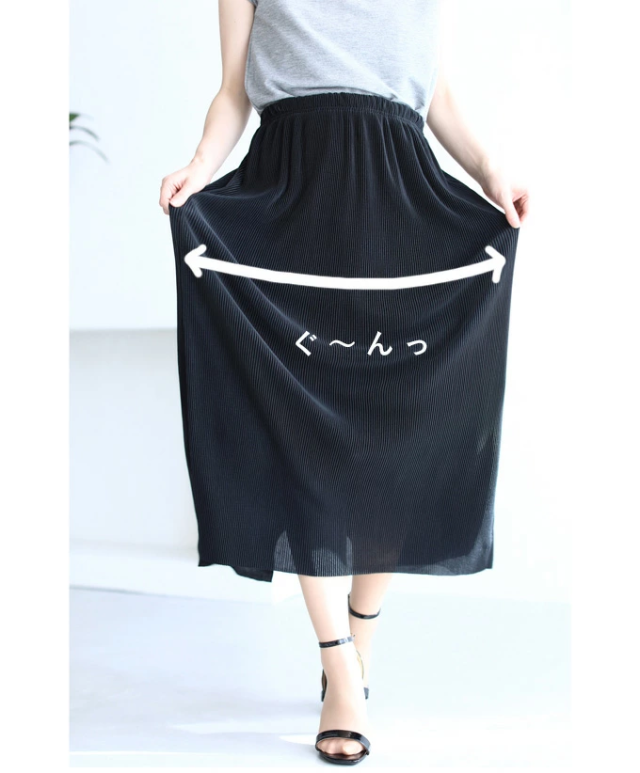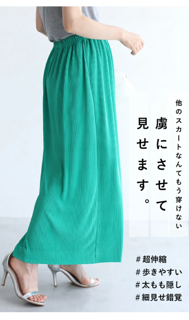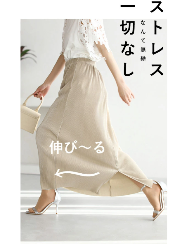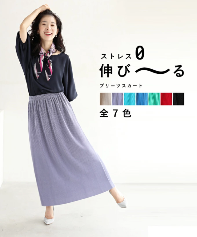 【閉店SALE】 ストレス ゼロ 伸び〜る プリーツ スカート (S~L/2L~3L) mf00001 cawaii ウエストゴム Iライン ロング マキシ 大きいサイズ 春 夏 秋 タイト GW 母の日 レディース ファッション 30代 40代 50代 ミセス