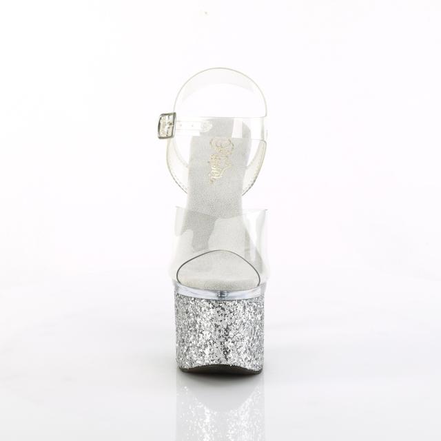 Pleaser(プリーザー) ESTEEM-708LG イリデセントグリッター厚底サンダル クリア/クリア-シルバーグリッター◆取り寄せ