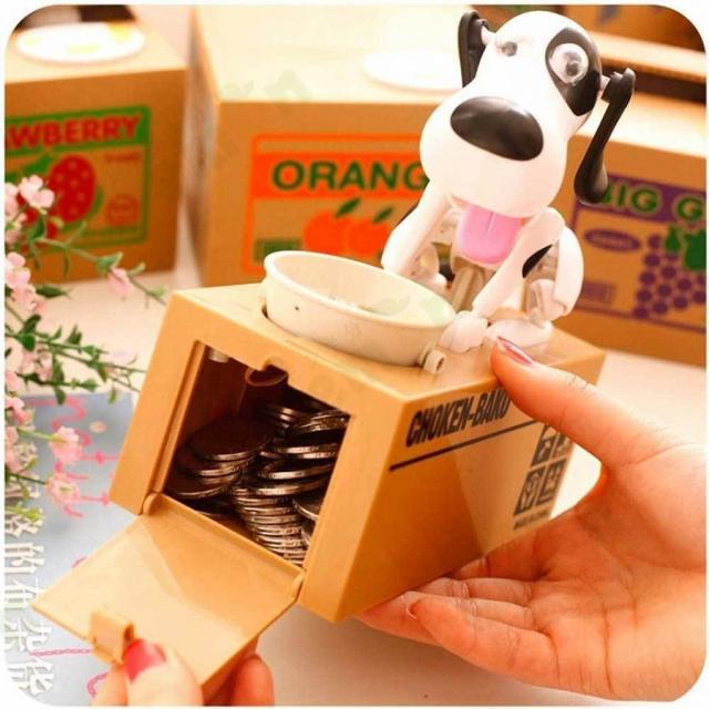 【愛らしいデザイン】盗む貯金箱の上に任意のサイズのコインを置くと、愛らしい犬がコインを盗むのに苦労し、箱にコインを入れて、とても面白くてクリエイティブです。