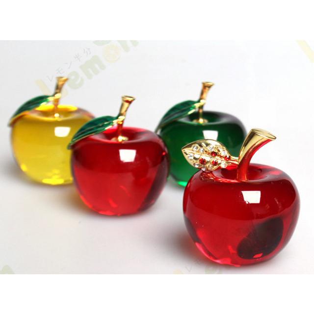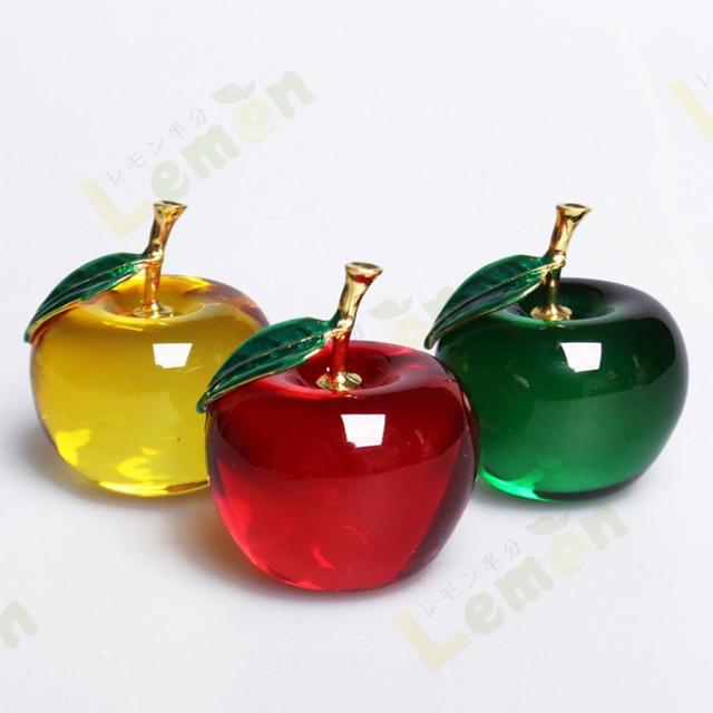 釉製直径55mm水晶リンゴ クリスタルアップル ペーパーウェイト ギフト インテリア 開運グッズ 装飾置物 卓上置物 オブジェ オーナメント