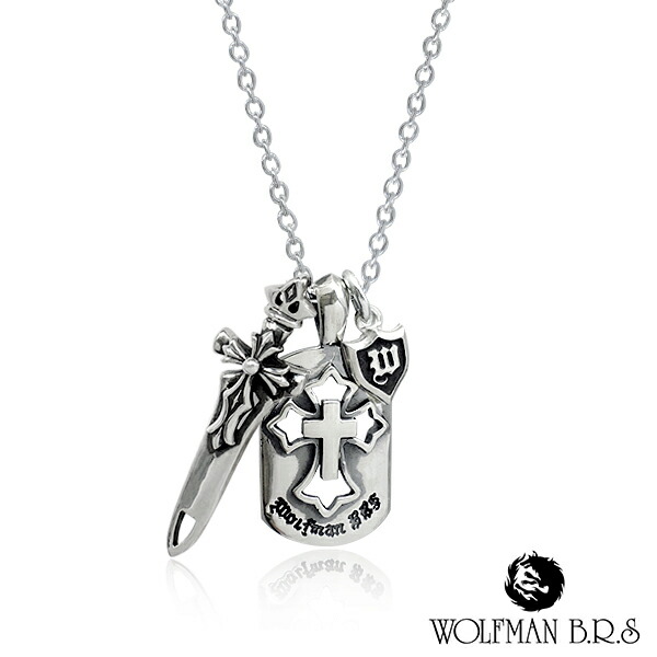 ウルフマン ブレード クロス チャーム ドッグタグ ペンダント ネックレス チェーン付き シルバー925 シルバーネックレス 十字架 剣