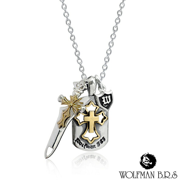 ウルフマン ブレード クロス チャームドッグタグ ペンダント ダブル ゴールド ネックレス チェーン付き シルバー925 シルバーネックレス