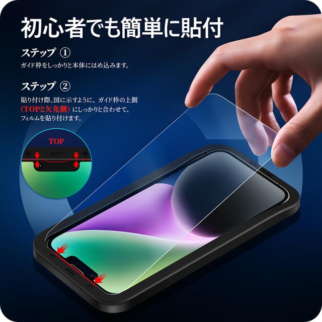 ● 【貼り付け超簡単】専用の貼り付けガイド枠が同梱されています。ガイド枠を利用することで、本体とフィルムがズレることなく、だれでも簡単にフィルムを貼ることが可能です。また、フィルム自体のシリコン自己吸着層により、位置を合わせて上から軽く置くだけで気泡が入ることなく簡単に装着できます。