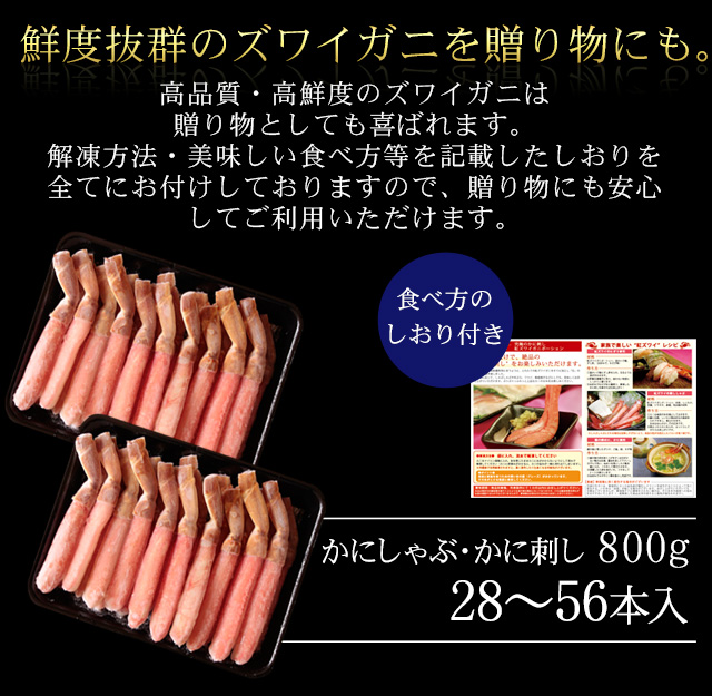 ズワイガニ かにしゃぶ・お刺身ポーション800g(28〜56本) かに カニ 蟹 送料無料(北海道・沖縄を除く)