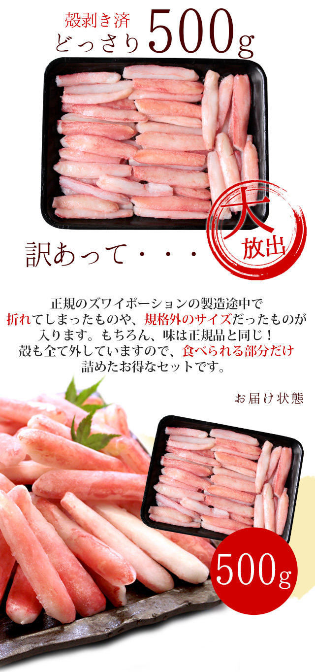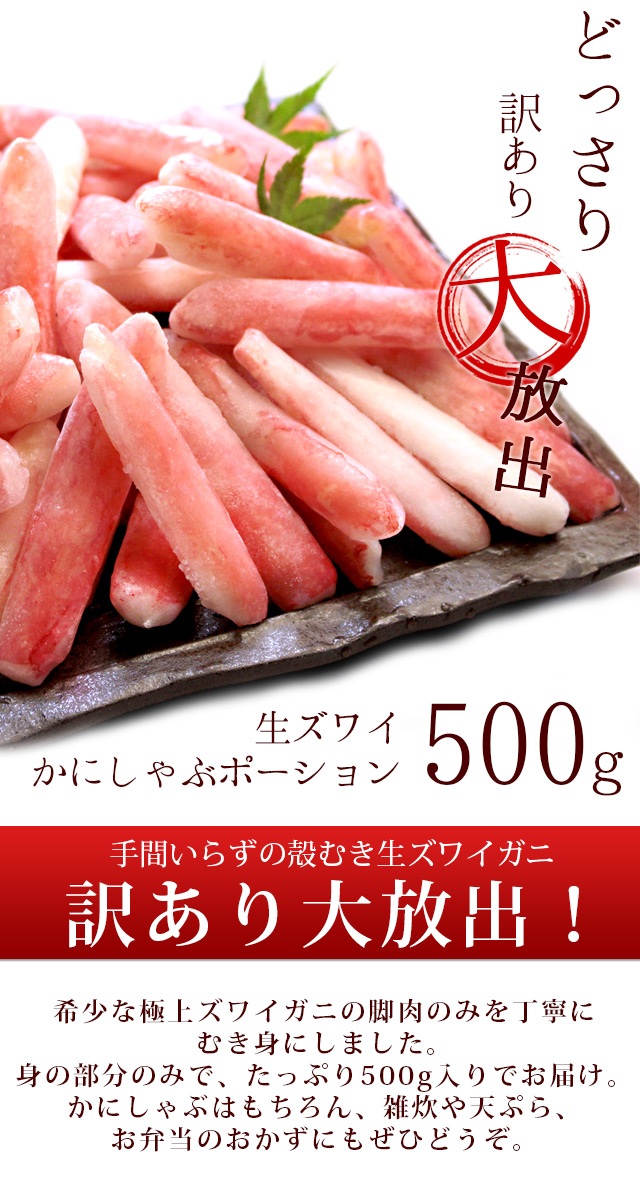 ズワイガニ かにしゃぶポーション500g 訳あり かに カニ 蟹 送料無料(北海道・沖縄を除く)