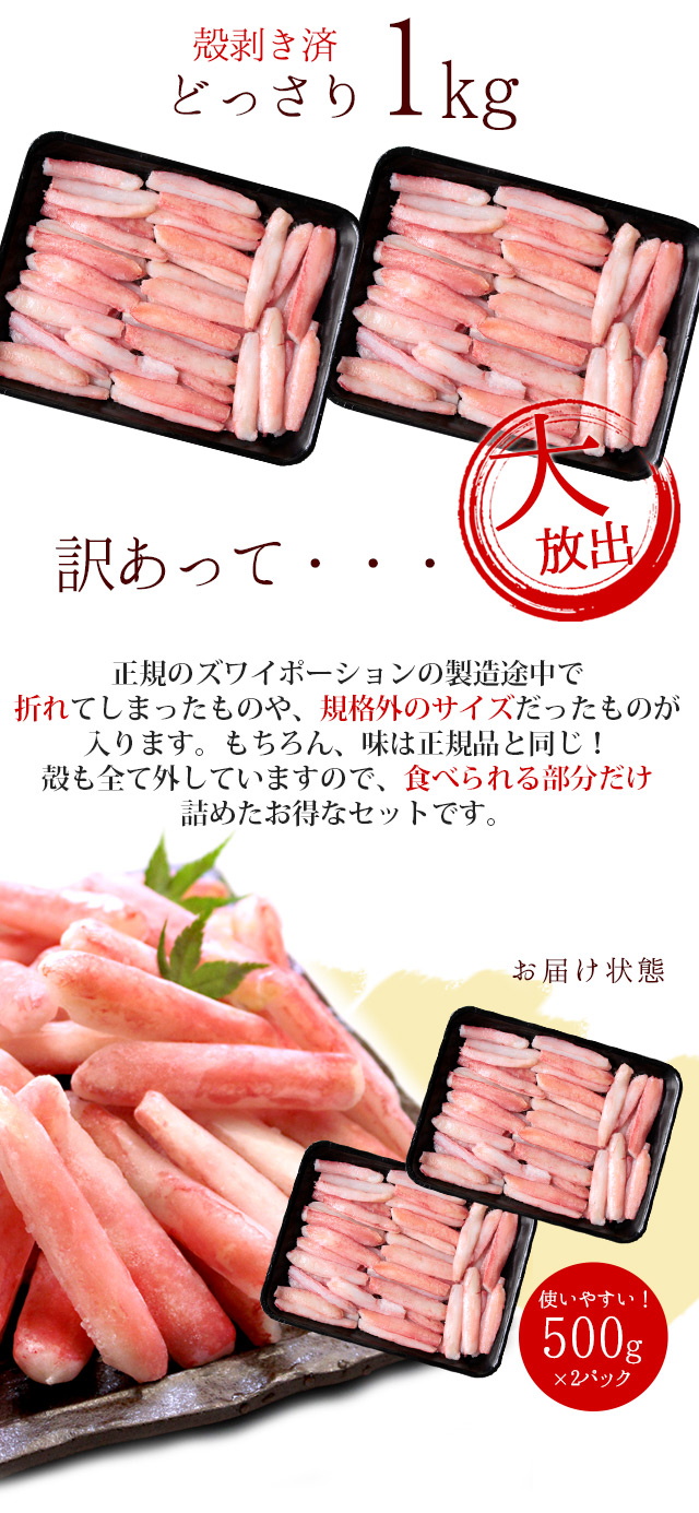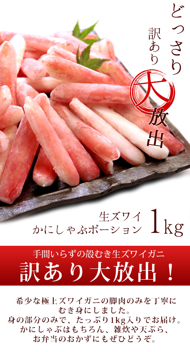 ズワイガニ かにしゃぶポーション1kg 訳あり かに カニ 蟹 送料無料(北海道・沖縄を除く)