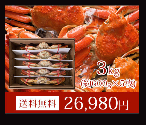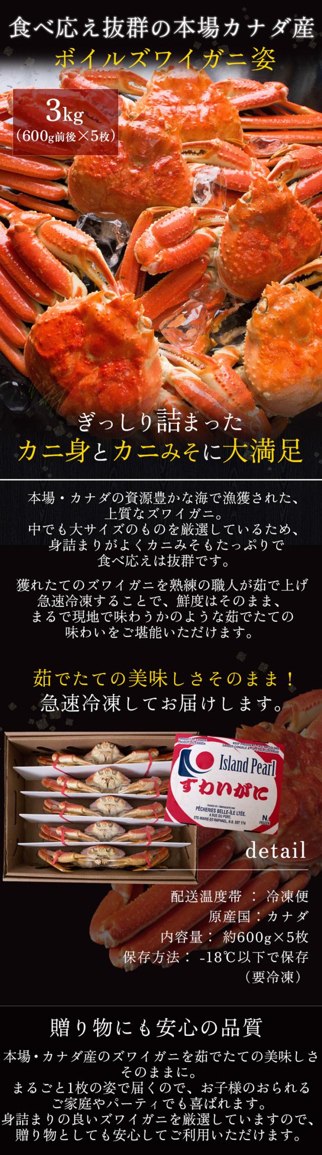 ボイルズワイガニ姿3kg(600g前後×5枚セット) かに カニ 蟹 送料無料(北海道・沖縄を除く)
