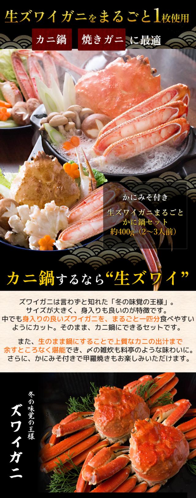 かにみそ付き 生ズワイガニまるごとかに鍋セット約400g(2〜3人前) かに カニ 蟹 送料無料(北海道・沖縄を除く)