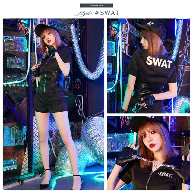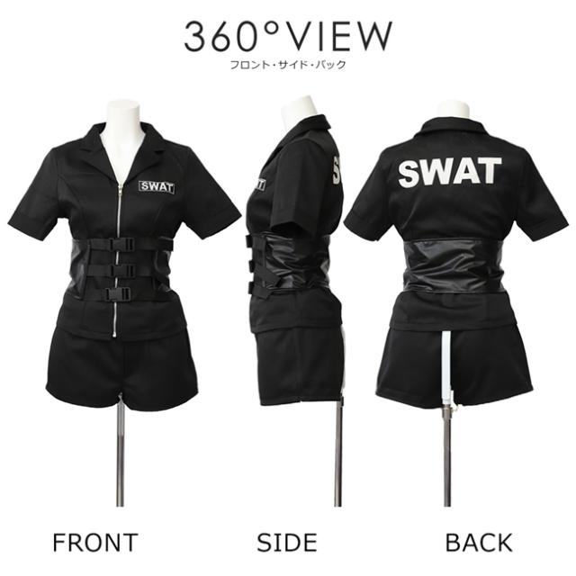 ハロウィン コスプレ 衣装 セクシー SWAT 警察 ポリス テーマパークやハロウィンパーティー等で定番になりつつあるSWAT衣装の登場 シンプルなブラックカラーが大人っぽい