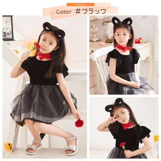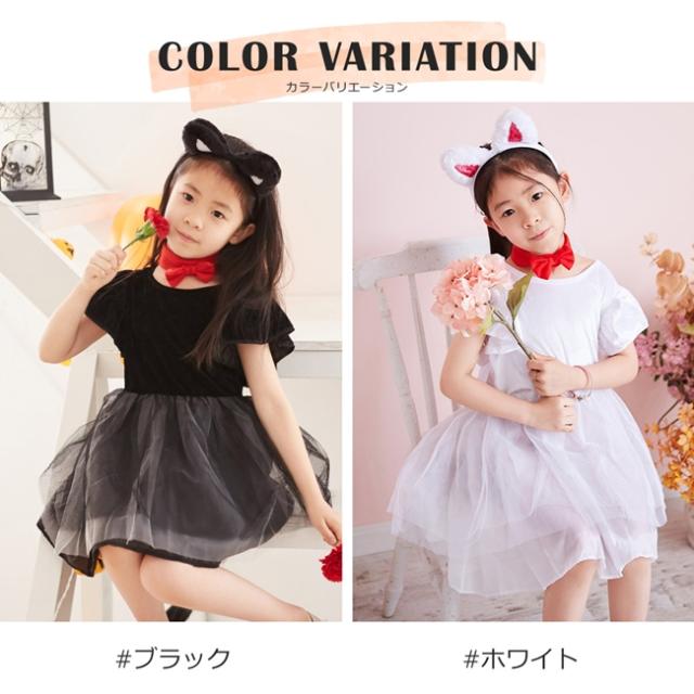 ハロウィン コスプレ 衣装 子供 猫 キッズ ドレス とってもキュートな猫ちゃんイメージの衣装が登場 ふわふわのチュールスカートで女の子っぽい仕上がりに