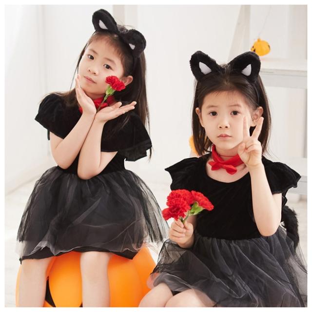 ハロウィーン コスプレ ハロウィン 衣装 子供 仮装 黒猫 キッズ ドレス 写真撮影 遊園地 テーマパーク 変身 なりきり コス ハロウィーン ベビー 寝相アート お遊戯会 クリスマス 記念日 誕生日 文化祭 ペア 小学生 ハロウィン子供 幼稚園 ホワイト 白 ブラック 黒 100 110 120 130 cm