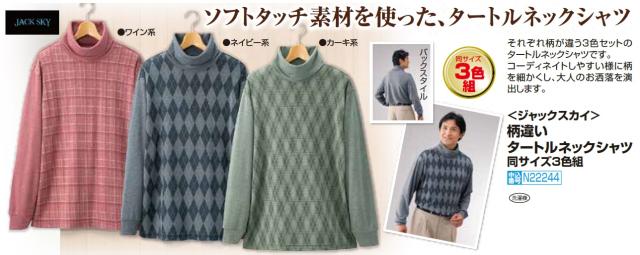 それぞれ柄が違う3色セットのタートルネックシャツです。