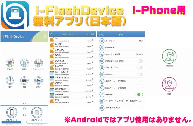※このアプリは i-Phone用 です。 Androidではアプリの使用はありません。 外部SDカードとして使用いたします。