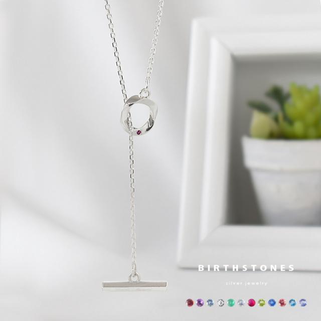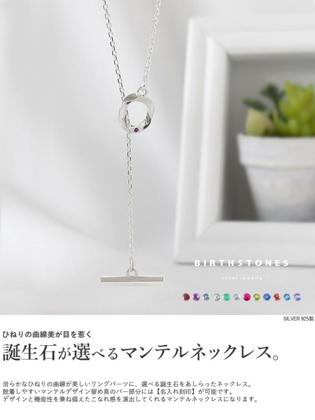 ネックレス 誕生石 刻印 レディース シルバー925 マンテル ラリエット y字 ひねり ツイストリング シンプル おしゃれ jln116