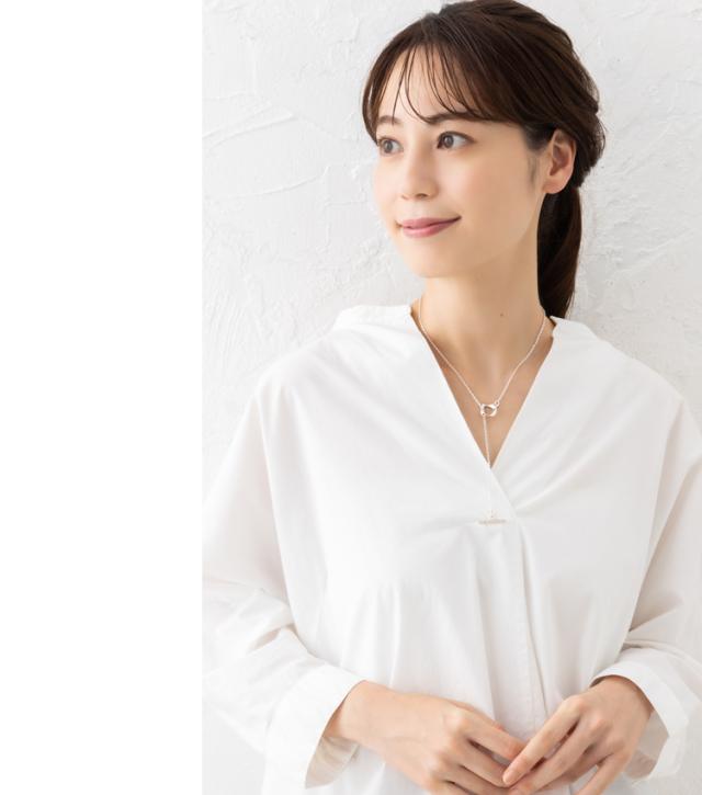滑らかなひねりの曲線が美しいサークルパーツに選べる誕生石をあしらったマンテルネックレスです。