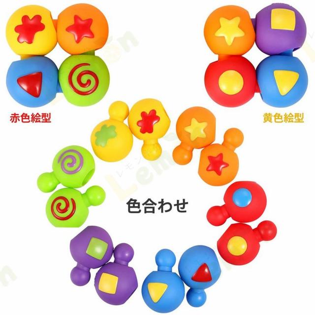 幾何学的なデザイン、小さな手でも握りやすくなっています。そして虹色を基本としたグラデーションは鮮やかで、そのまま様々なおもちゃやギアに幅を広げています