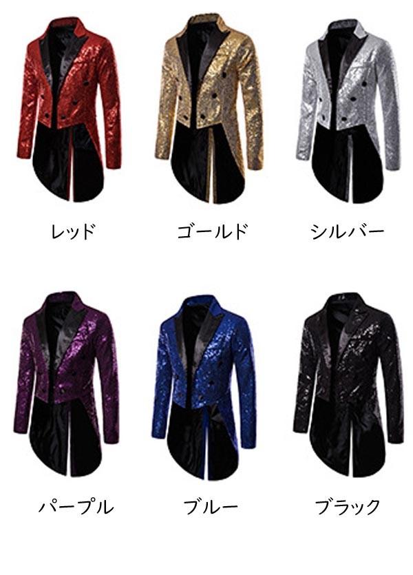 メンズ ジャケット アウター 燕尾服 キラキラ スパンコール 王子様 ステージ衣装 舞台 演出 貴族 コスプレ 衣装 オペラ用衣装 男性 大人 忘年会 イベント 発表会 演奏会 司会者 かっこいい ハロウィン 文化祭 学園祭 赤 金色 銀色 紫色 青 黒 ei144t2t2c9