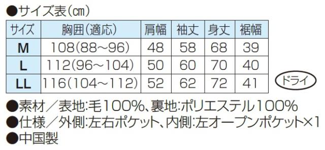 ●素材/表地:毛100%、裏地:ポリエステル100%