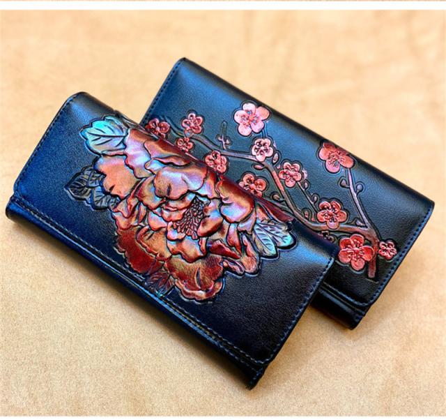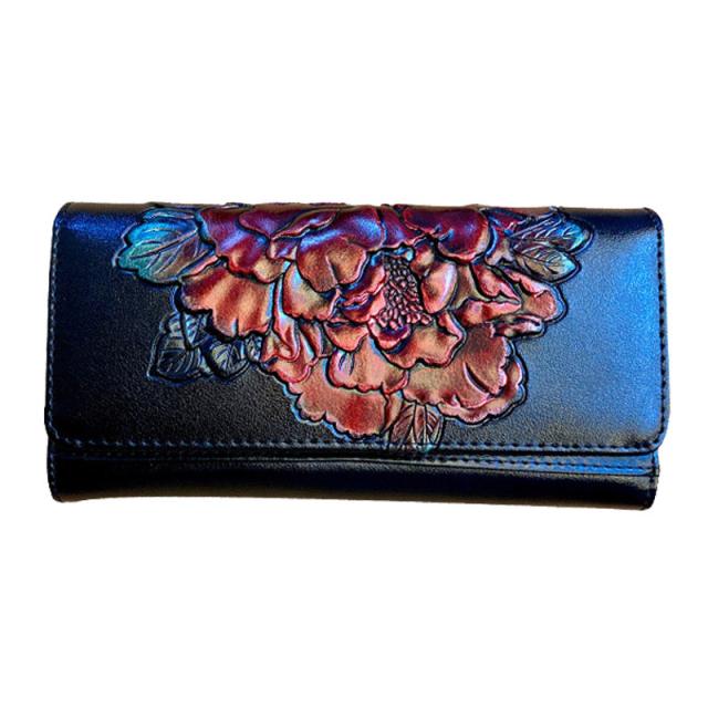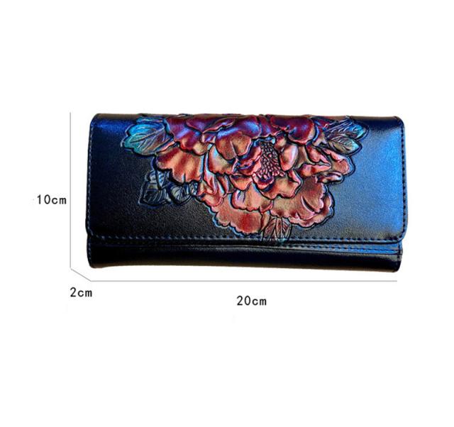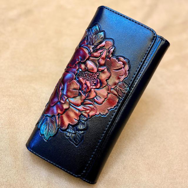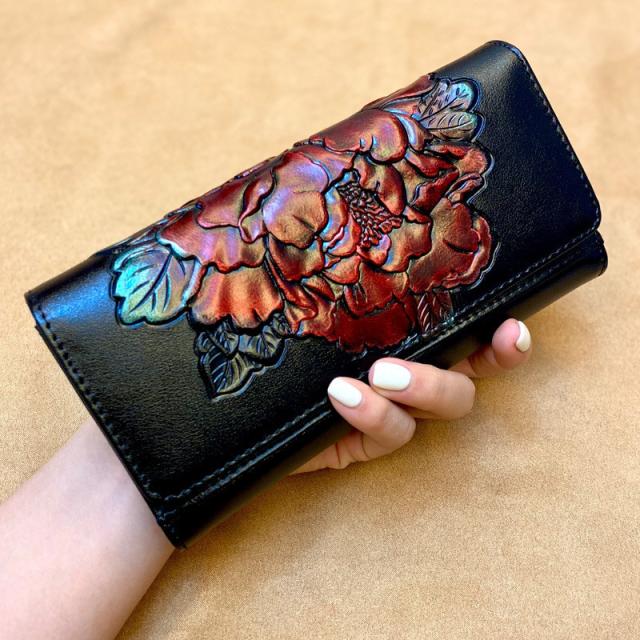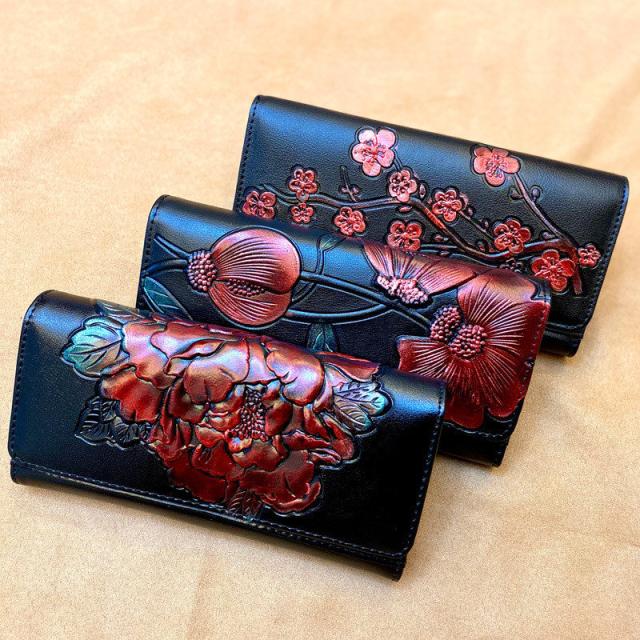 長財布 本革 花柄 牛革財布 レディース 収納力抜群 カード入れ 大容量 ロング 小銭入れ 開運 可愛い 外出 母の日 プレゼント
