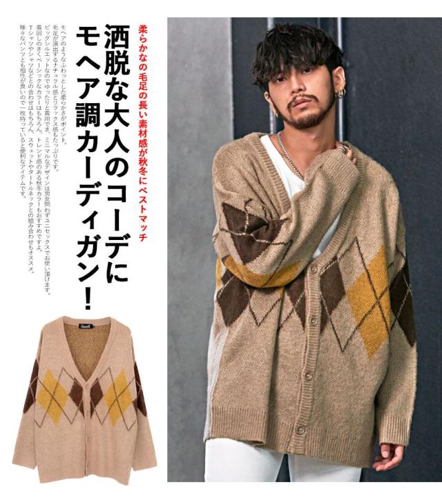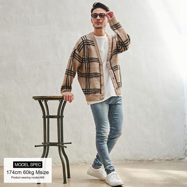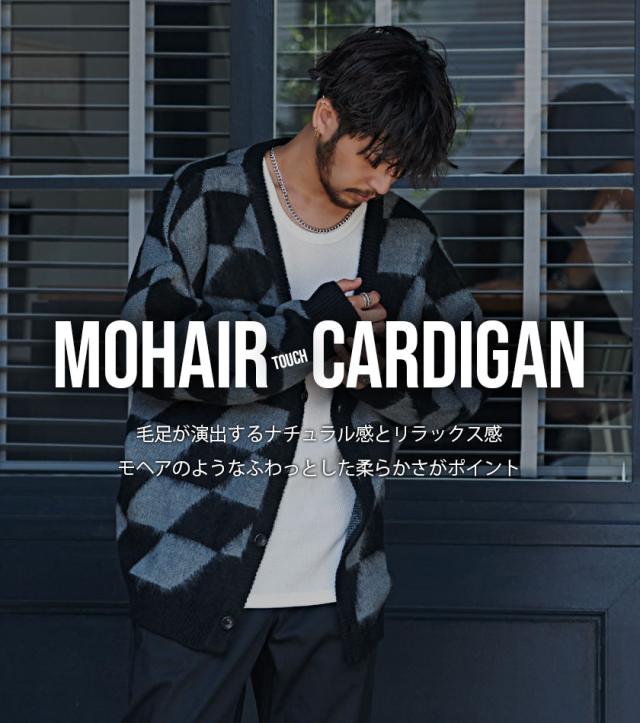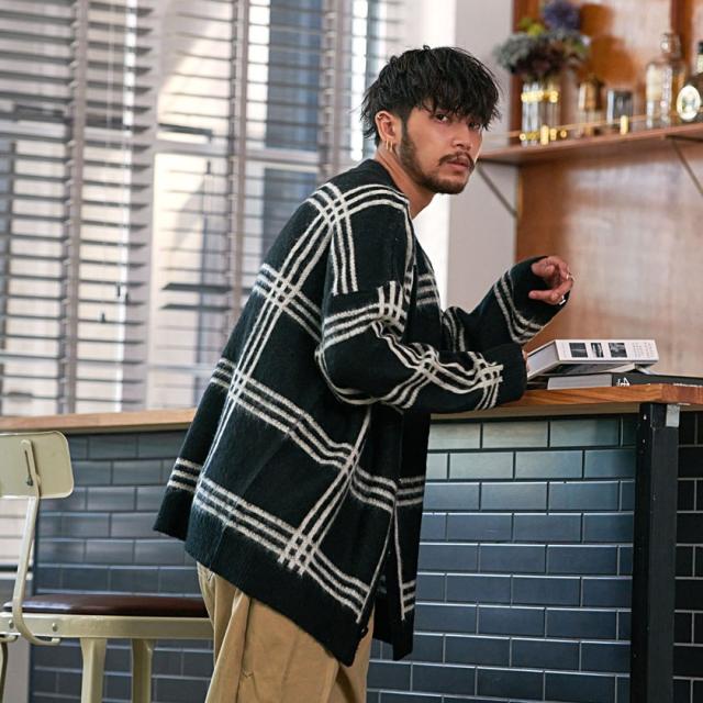 カーディガン メンズ 厚手 オーバーサイズ 総柄 格子柄 大人 大きいサイズ ニット モヘア モヘヤ ジャガード モコモコ 暖かい シンプル 無地 モヘアカーディガン アウター 防寒 もこもこ カジュアル ファッション おしゃれ 春 夏 秋 冬 ストリート ストリート系 ストリートファッション 韓国 韓国系 韓国ファッション 下北沢 下北系 古着 古着系 90s 90年代 ベージュ ブラック 黒 秋 冬 CavariA キャバリア 男性 男 父の日 父の日ギフト 父の日プレゼント 20代 30代 40代 メンズファッション 東京 プレゼント 誕生日 記念日 贈り物 ギフト配送について