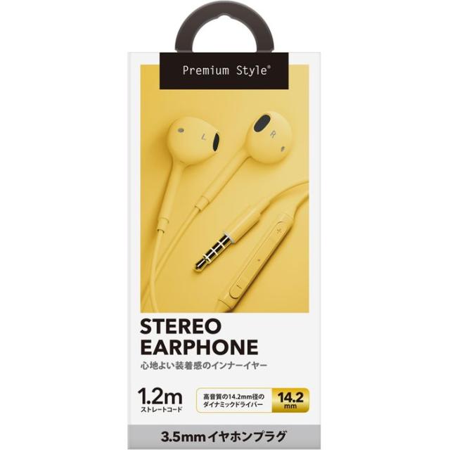 イヤホン 有線 マイク付 リモコン 通話 音量調整 再生 停止 3.5mmイヤホンプラグ ステレオイヤホン イエロー PGA PG-SEIE1YE7