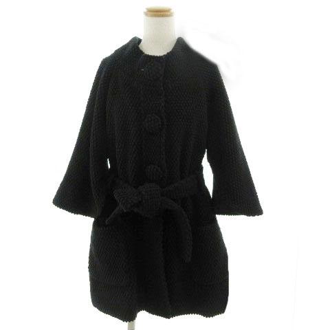 【中古】GRACE CONTINENTAL コート ベルスリーブ 立体模様 リボンベルト シンプル ブラック 黒 36 レディース