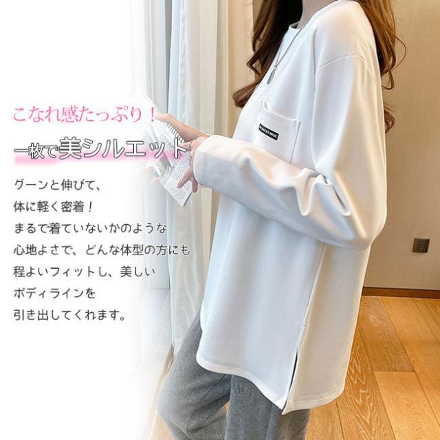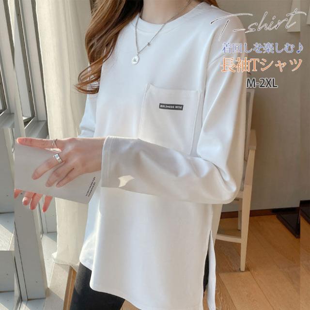 Tシャツ 長袖 レディース 春新作 新作 送料無料 トップス スリット ラウンドネック プルオーバー カットソー インナー シャツ 無地 長袖tシャツ 秋服 薄手 軽量 ティーシャツ カジュアル 新作 新品 20代 30代 40代 女性 女子 女性用 レディースtシャツ おしゃれ 新作 春服