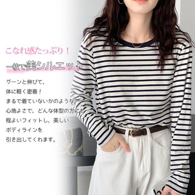 Tシャツ 長袖 レディース 春新作 新作 送料無料 トップス ラウンドネック ボーダー プルオーバー カットソー インナー シャツ 無地 長袖tシャツ 秋服 薄手 軽量 ティーシャツ カジュアル 新作 新品 女性 女子 女性用 レディースtシャツ おしゃれ 秋服 秋冬 バレンタイン