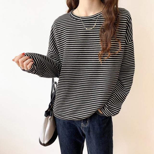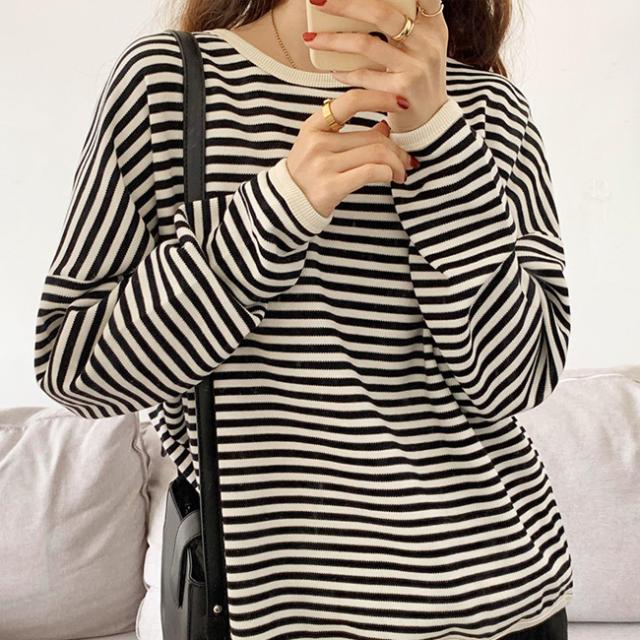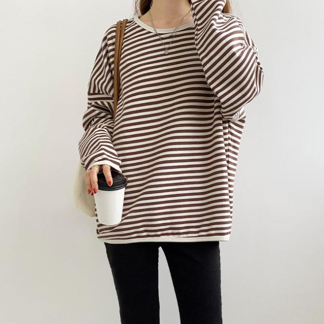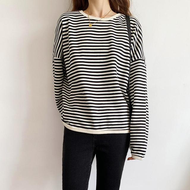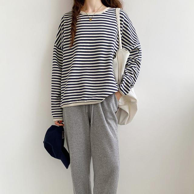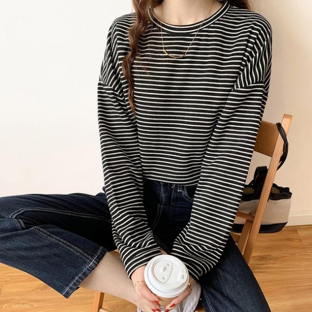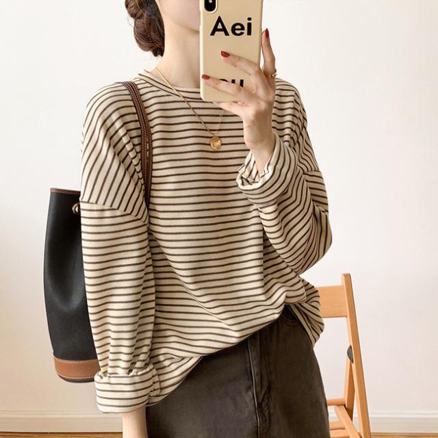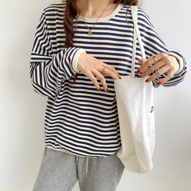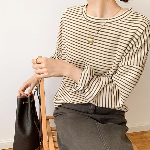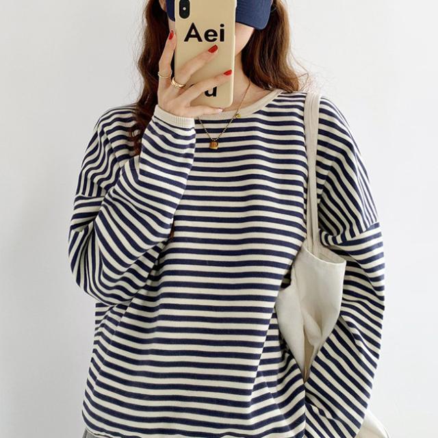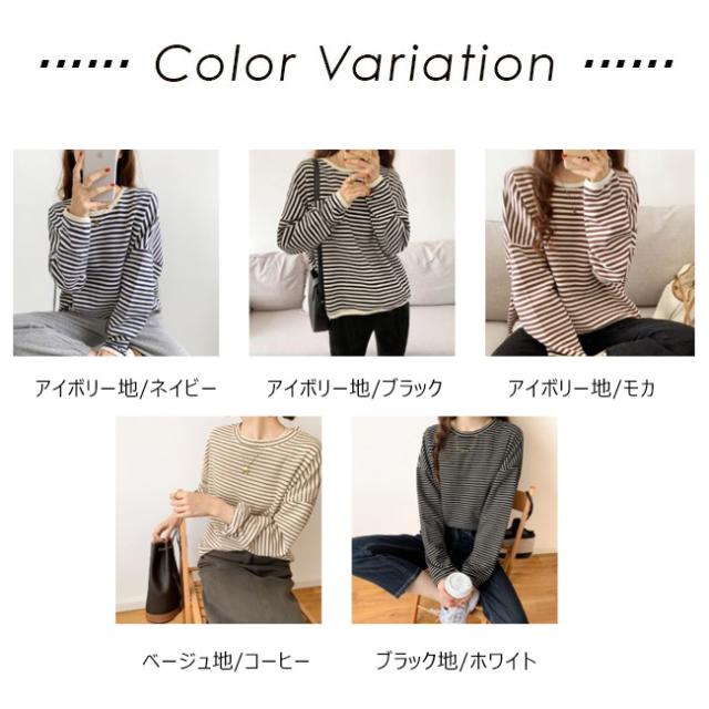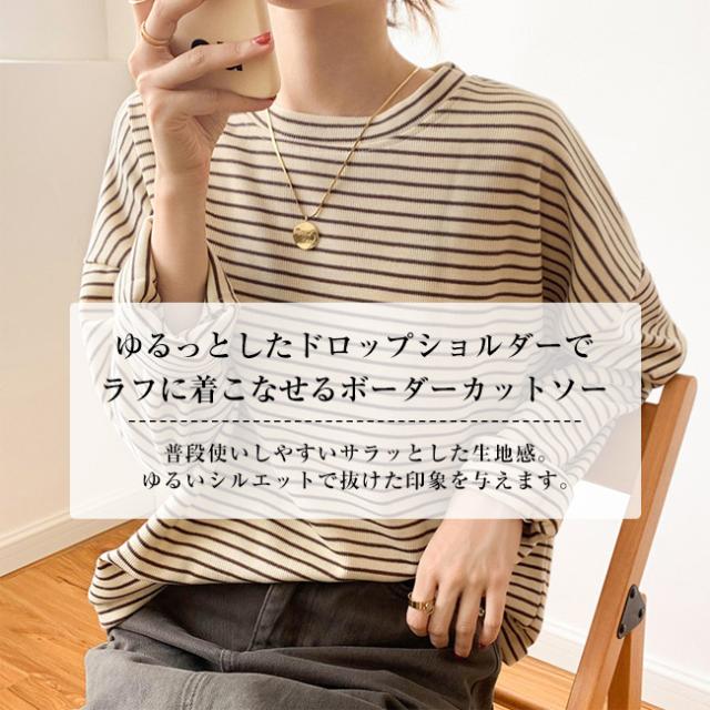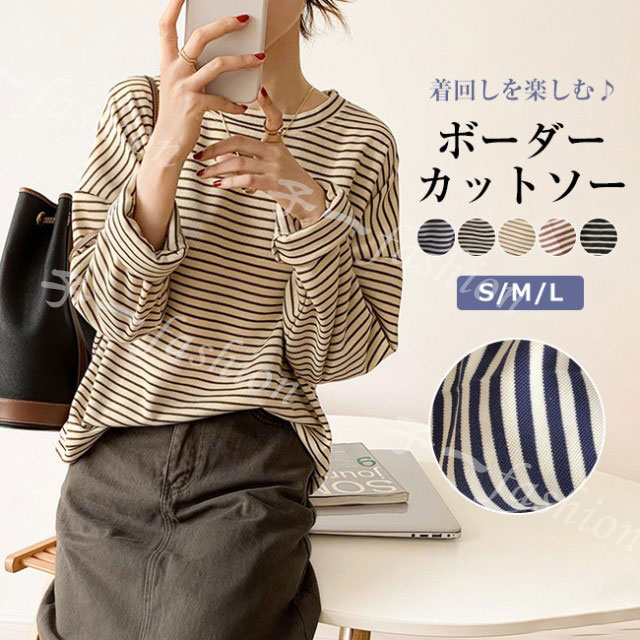 カットソー ボーダー 冬新作 新作 ドロップショルダー ラウンドネック トップス レディース ロンT 春 カジュアル ゆったり 大きいサイズ オーバーサイズ 韓国 長袖 プルオーバ ts 秋服 秋冬