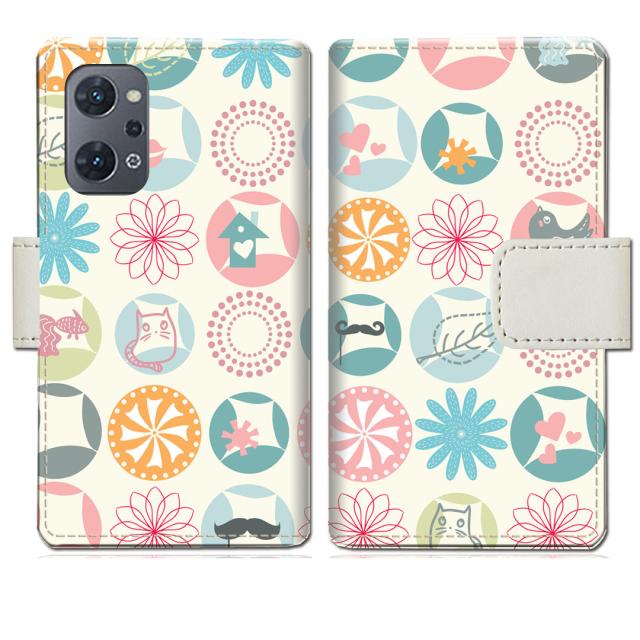 OPPO Reno 7A 手帳型 ケース カバー オッポリノ 7a 手帳ケース 手帳カバー【Cドットカラフルデザイン】