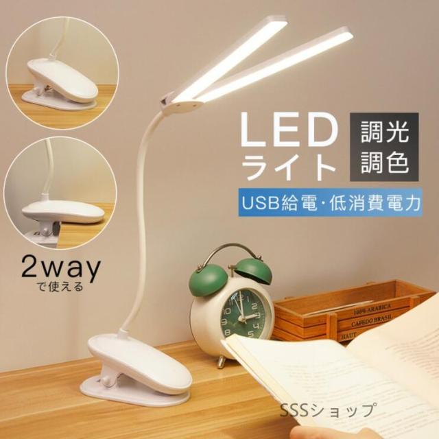 LEDデスクライト クリップライト 2WAY ダブルライト 3段階調色 フレキシブルアーム 自由可動 USB給電