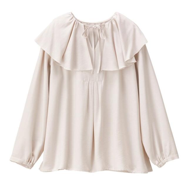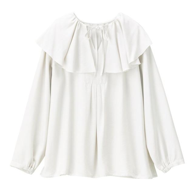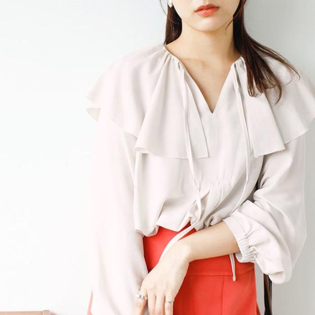 レディライクな印象のフリルカラーブラウス