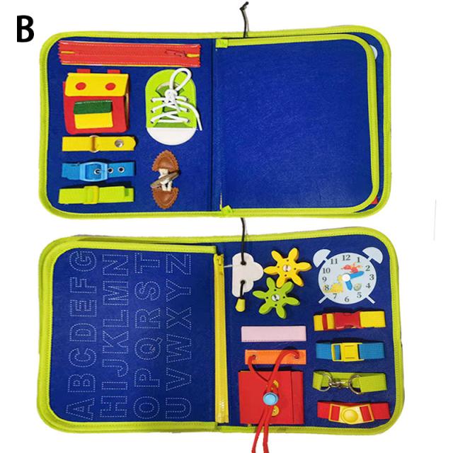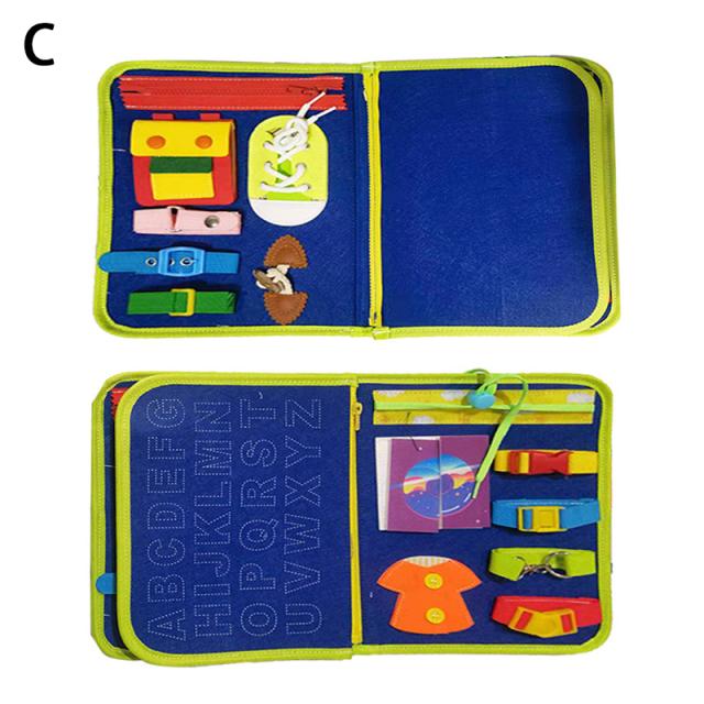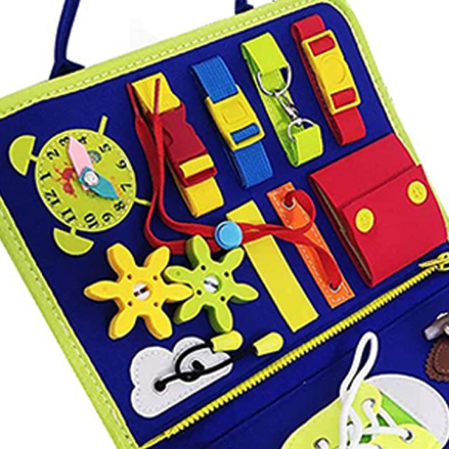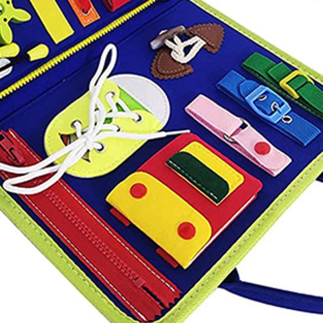 基本的なスキルボードには、バックル(ベルトとシートベルト)、ボタン、靴ひも、スナップがあり、子供たちが自分のドレッシングスキルを組み立てることができます。