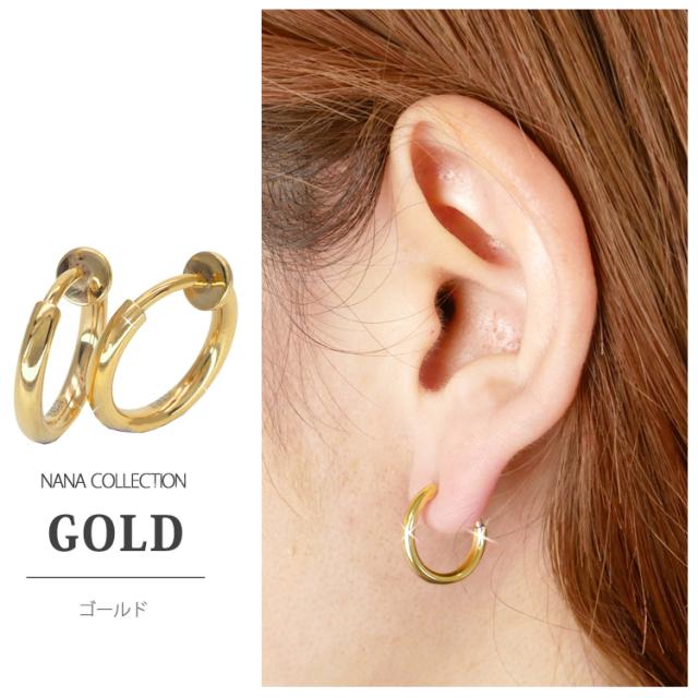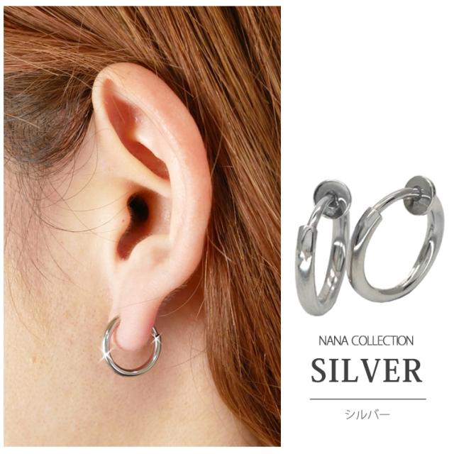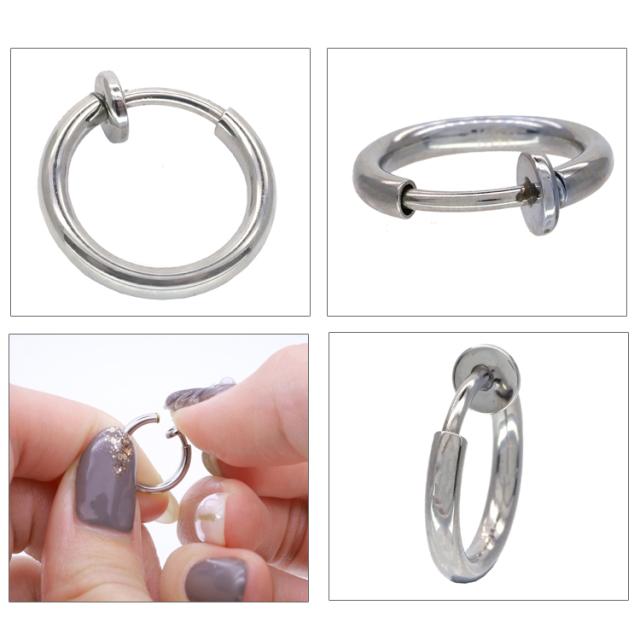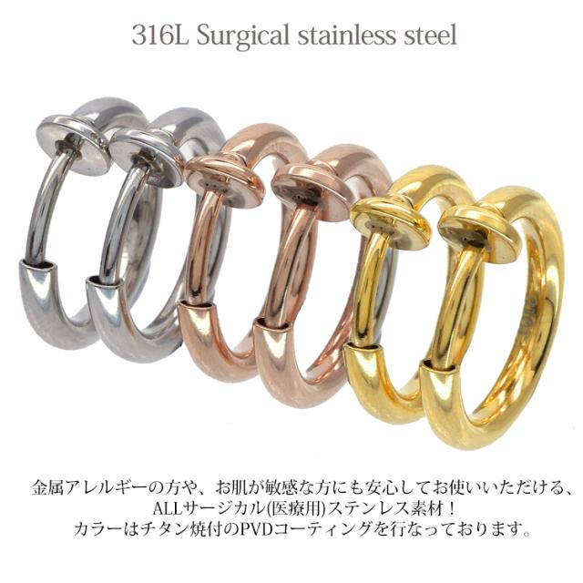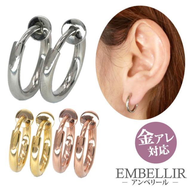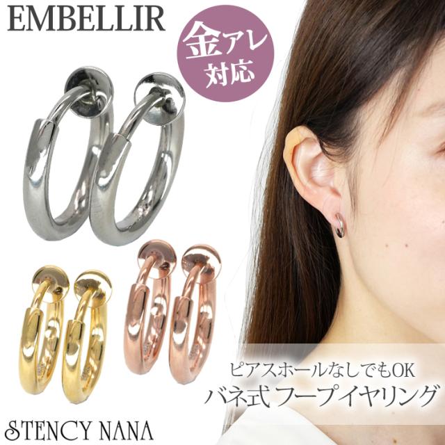 金属アレルギー対応 [EMBELLIR] ステンレスイヤリング バネ式 シンプルラインフープイヤリング 痛くない サージカルステンレス