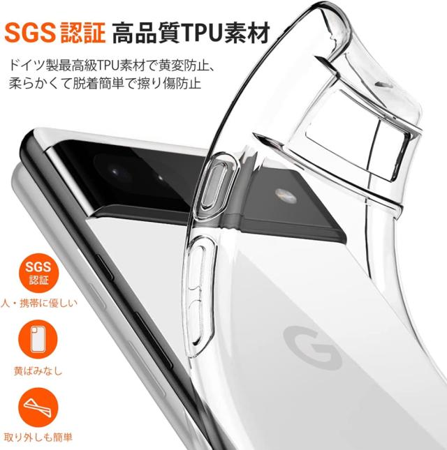 【高品質のTPU素材】衝撃吸収、耐久性が最も効率的で丈夫なの素材の一つであるTPUで作られております。クリスタルのようなTPUで、優れた保護力と共に特有の透明さでピクセル6aの美しさと感度をアップさせます。