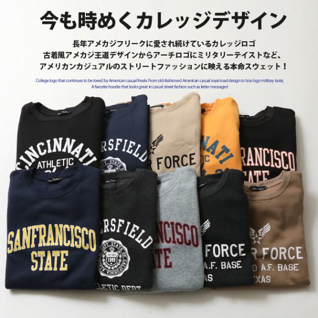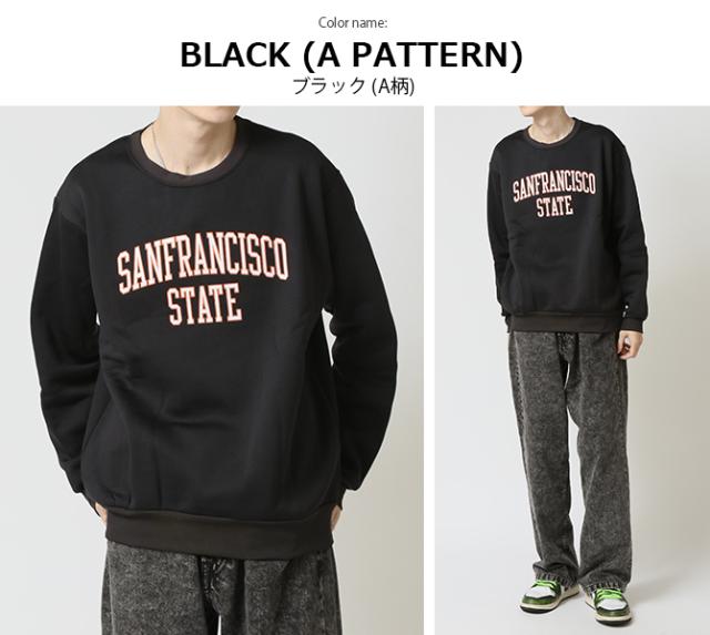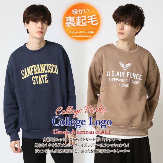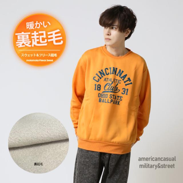 裏起毛 トレーナー 秋冬新作 メンズ アメカジ スウェット トップス あたたかい ロゴ プリント 長袖 クルートレーナー リラックスフィット